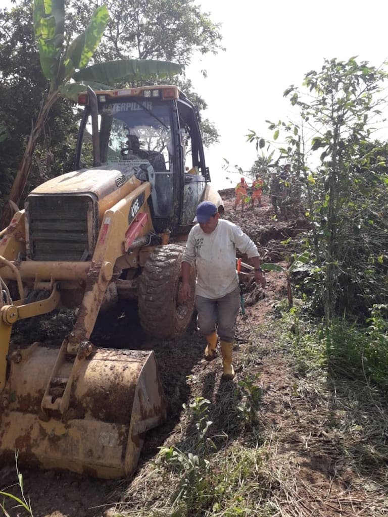 Maquinaria del batallón Cisneros de la Octava Brigada del ejército abriendo paso en vías afectadas por derrumbes