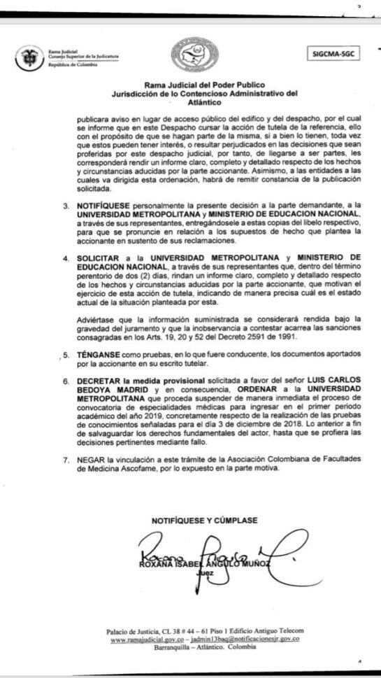 Hoy se conoce que Juzgado Trece Administrativo de Barranquilla ordenó como medida cautelar a la Universidad Metropolitana la suspensión inmediata del nuevo proceso.