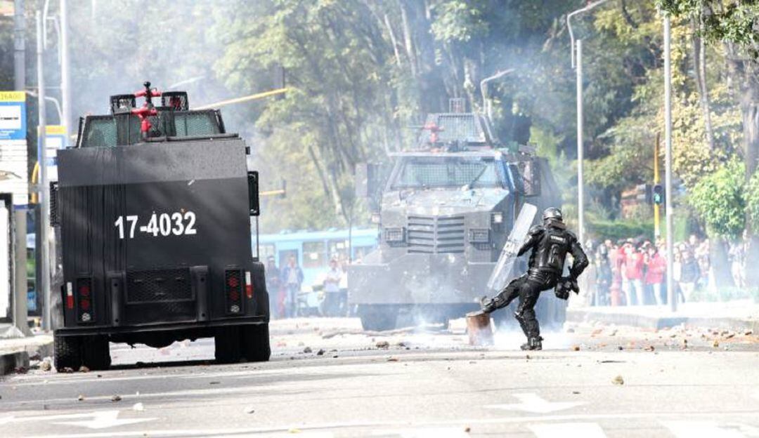 Los uniformados, resultaron afectados luego de que los encapuchados lanzaran "papas bombas".