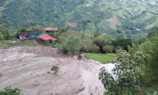 En esta hora en Aranzazu se registra un deslizamiento de tierra de grandes magnitudes en la vereda Muelas.