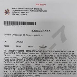 La misiva ordenaba tomar acciones urgentes y extremar las medidas de seguridad para contrarrestar los actos terroristas de la guerrilla del ELN.
