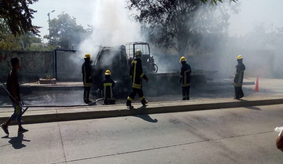 Dos máquinas de bomberos fueron necesarias para controlar las llamas que consumieron una grúa que minutos antes había sido incinerada, al parecer por un mototaxista identificado por la Policía como Danilo Gonzalez Guerrero de 25 años de edad, quien habría actuado de tal forma luego que las autoridades le inmovilizaran el vehículo.