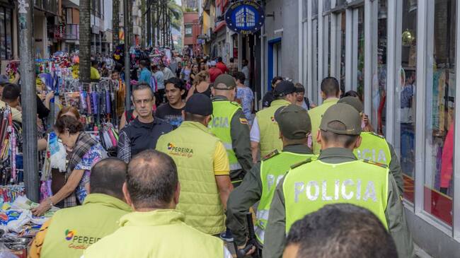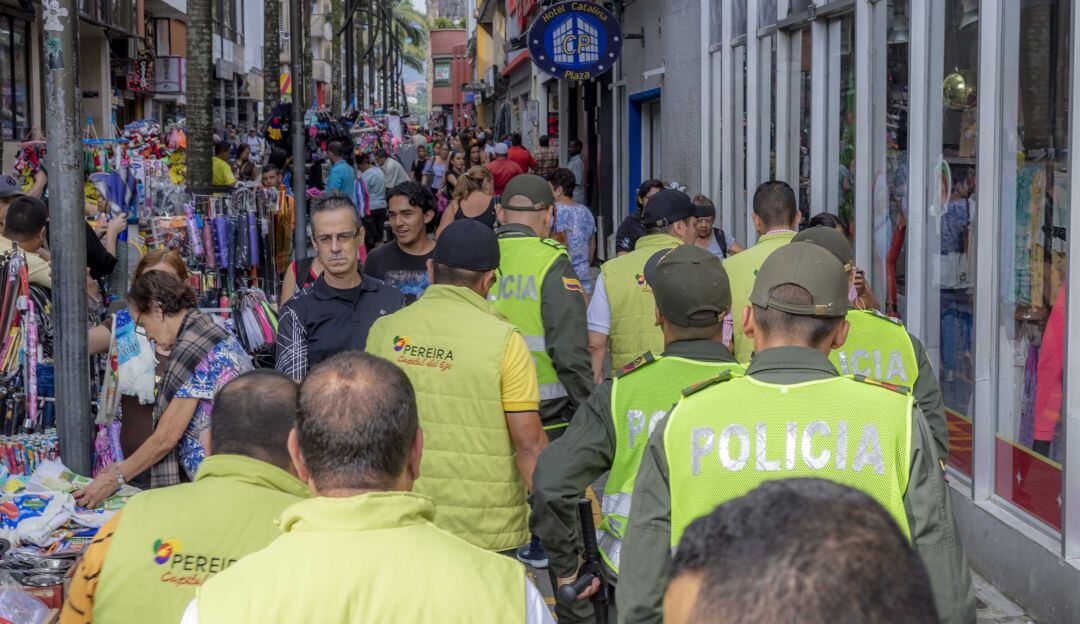 Uniformados de la Policía Metropolitana de Pereira en compañía de funcionarios de la Secretaría de Gobierno, intervinieron el centro de esta capital para controlar y regular el espacio público, y verificar la seguridad durante la época decembrina.