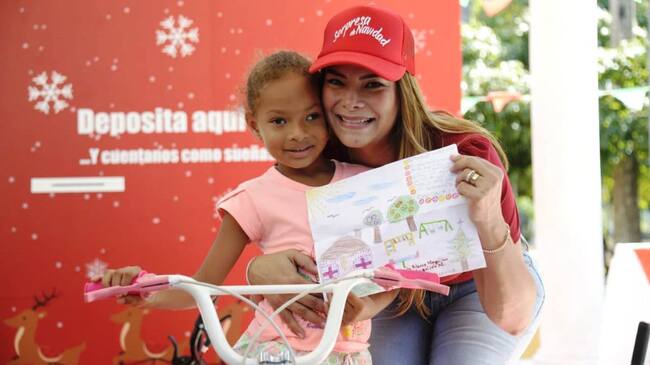 Luego de la apertura de la urna de la campaña Sorpresa Navidad, que contenía los mensajes de los niños que dibujaron y escribieron cómo visionan la ciudad, la esposa del Alcalde entregó premios a los niños como incentivo a su participación.