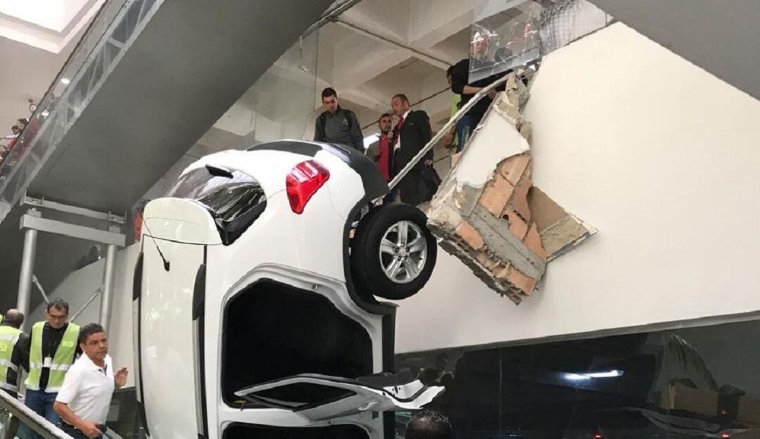 Un carro cayó de un piso al otro dentro de un centro comercial