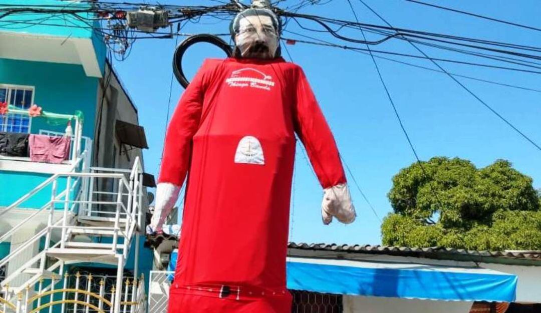 En la calle La Victoria del barrio San Fernando en Cartagena fabricaron el muñeco de año viejo más grande de La Heroica en homenaje a Nicolás Maduro, con seis metros de altura.