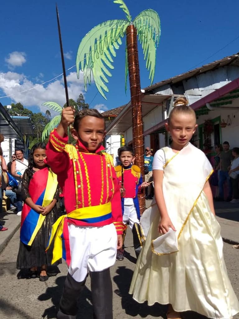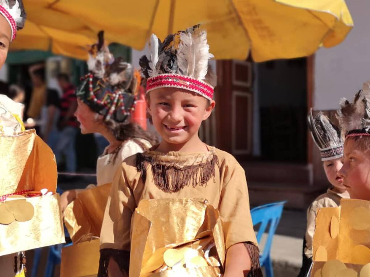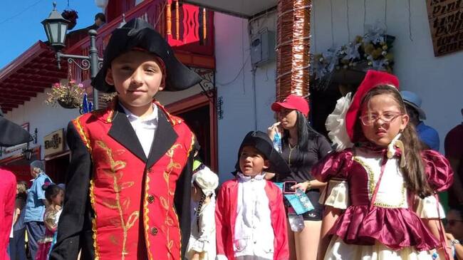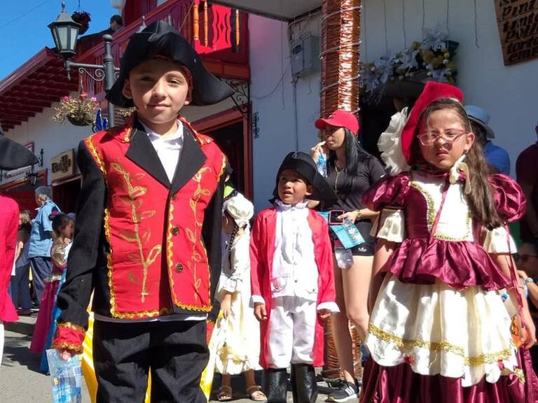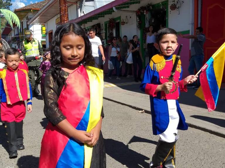 Niños recrean paso de libertador Simón Bolívar por Salento, Quindío