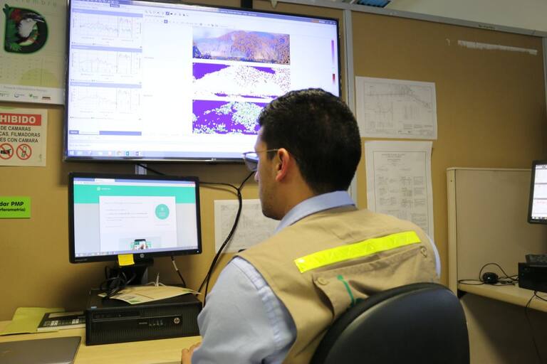 Fuera del centro de monitoreo y más exactamente el en proyecto, cuentan con drones que capturan los espacios como embalse, vertedero, presa y laderas.