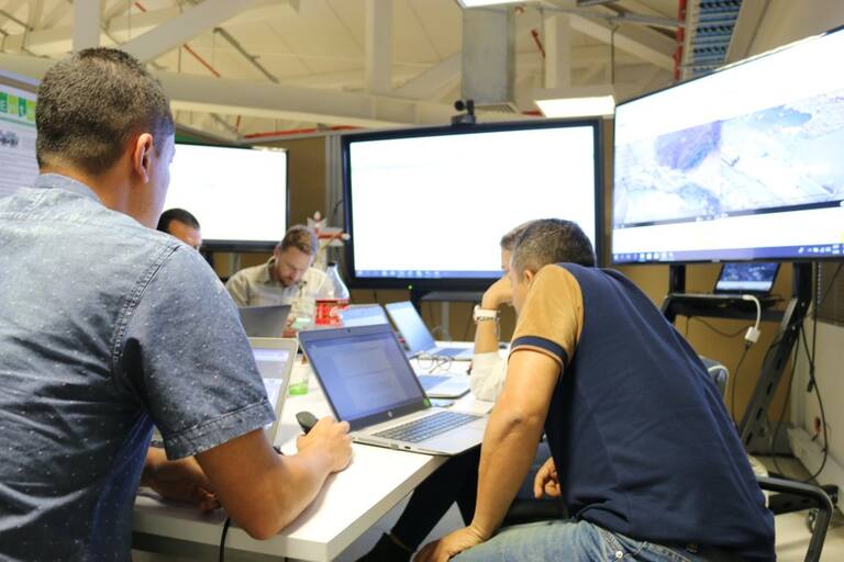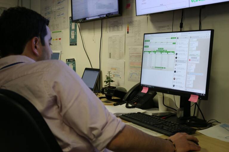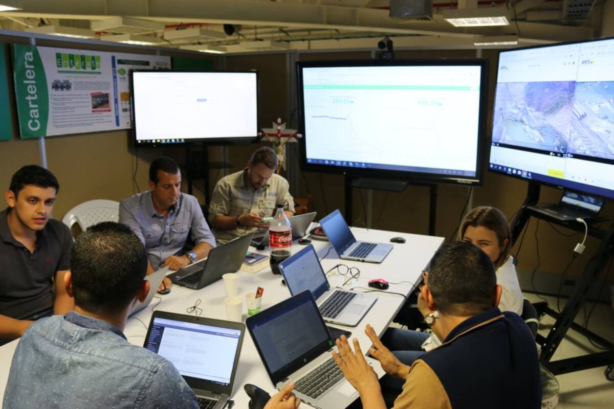 El centro de monitoreo del proyecto Hidroituango funciona las 24 horas del día. Allí se vigilan los avances de la obra y se toman decisiones en tiempo real.