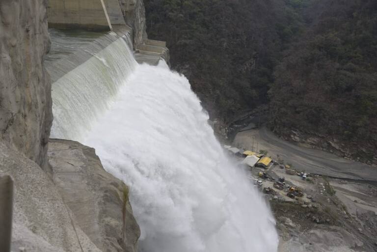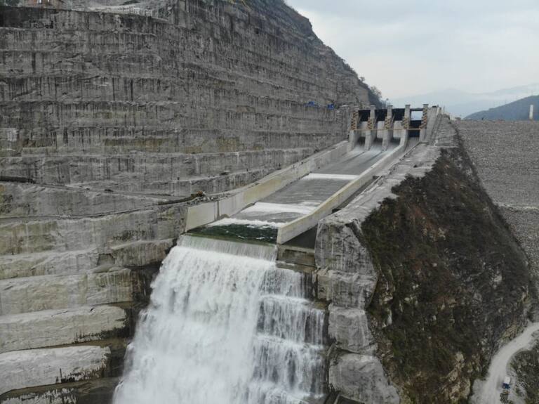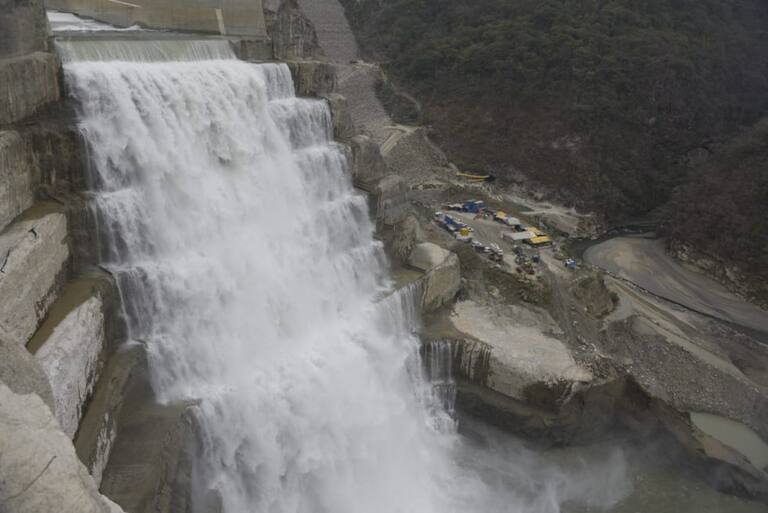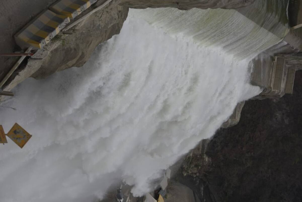 Así funciona hoy el vertedero de Hidroituango. Las operaciones sostenidas de evacuación del embalse se iniciaron el viernes en la noche y prosiguen sin problemas, dice EPM.