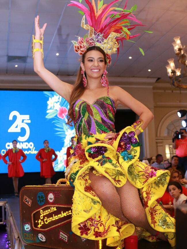 Foto 1 de 3La soberana usará un vestido llamado 'Juanita La Cambambera' que desea exaltar el legado de Estercita Forero a través de la canción Volvió Juanita, resaltando la nostalgia y alegría de ese personaje que vuelve a gozar del carnaval, pero "hace un regreso triunfal, con maletas llenas de lejanías, de pájaros, amores y canciones, para volver a su pueblo y bailar bajo la luna llena"