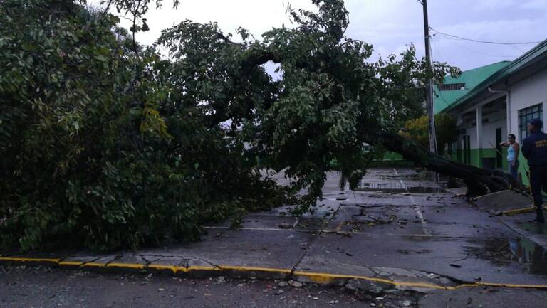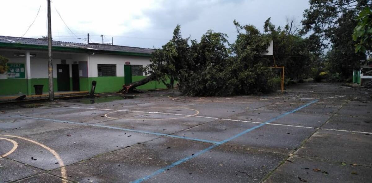 Árbol caído dentro de la escuela de la vereda El Laurel