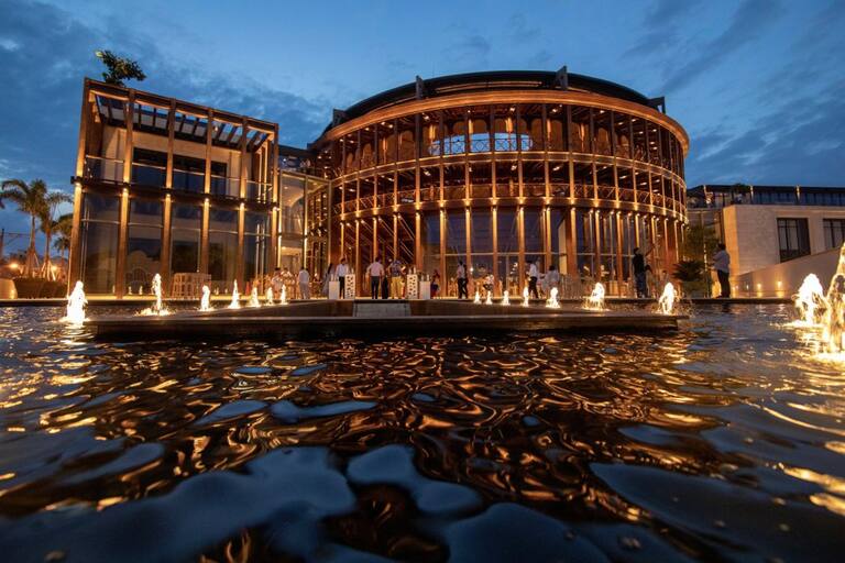 La Serrezuela cuenta con 22.000 mil metros cuadrados en total, pero la protagonista del diseño sigue siendo la antigua plaza de toros. Reconstruida en madera y pisos de piedra, conserva sus detalles de antaño, que se conjugan con galerías delicadamente iluminadas y una espectacular fuente central.