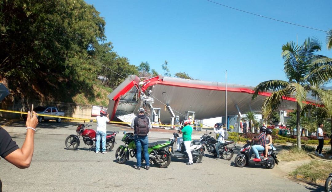 La caída de del cable generó daños en una estación de servicio y varios vehículos.