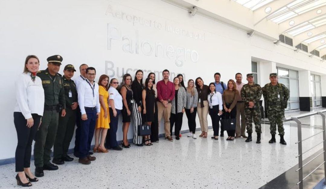 Los funcionarios de la aerolínea de bajo fueron recibidos en el aeropuerto Palonegro por el presidente de la Cámara de Comercio de Bucaramanga, Juan Camilo Beltrán Domínguez y delegados de la gobernación y el Ejército Nacional.