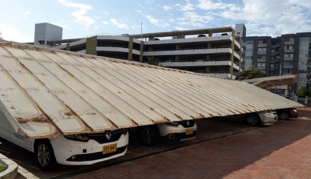El techo del parqueadero cayó sobre varios vehículos, pero no se presentaron heridas ni víctimas, según el reporte de los organismos de socorro, que atendieron el caso.