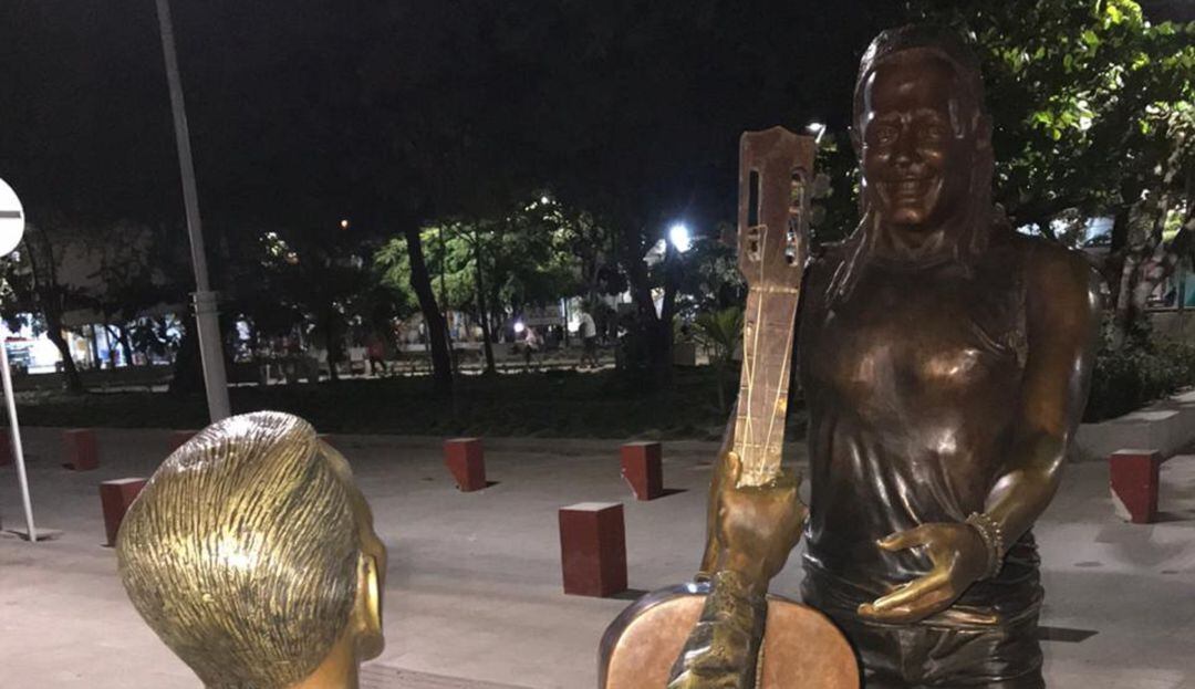 Dentro de las efigies erigidas hay una que retrata el paso de la herencia musical simbolizada en la entrega de una guitarra por parte de Guillermo Buitrago a Carlos Vives. Para sorpresa de todos, la figura que representa al cantante samario es calificada como femenina y alejada de la realidad.