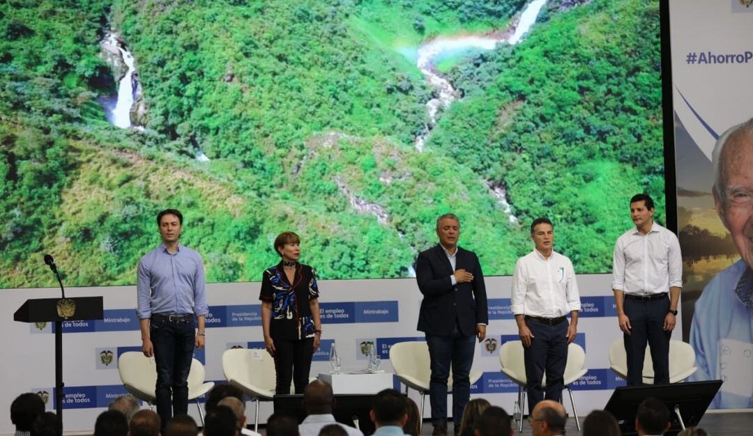 El Presidente de la República, Iván Duque Márquez, socializa a esta hora, en Medellín, junto con la Ministra de Trabajo, Alicia Arango Olmos, los beneficios de la reducción en los aportes a salud para los pensionados del país que devengan uno y dos salarios mínimos mensuales legales vigentes.