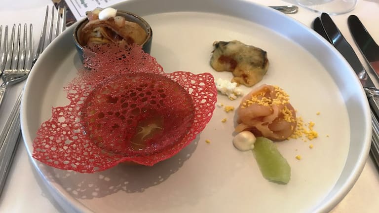 Se destaca la mini sopa en Olas de Mar con variedad de mariscos con vegetales, cilantro, leche de coco y algo de picante.