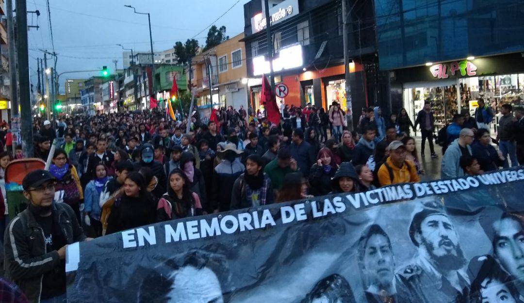 La movilización partió desde la Universidad de Nariño, en el sector de Torobajo, y poco a poco recorre diversas calles del centro de Pasto para luego concentrarse en la Plaza de Nariño.