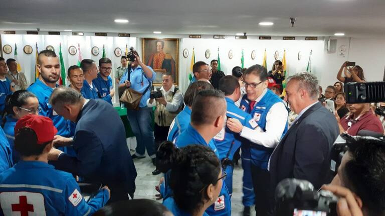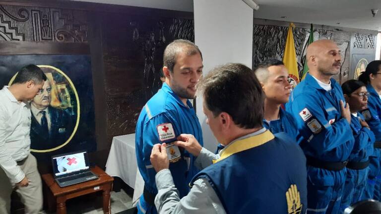 Gobernador y alcalde imponen estampa a los voluntarios de la Cruz Roja Quindío