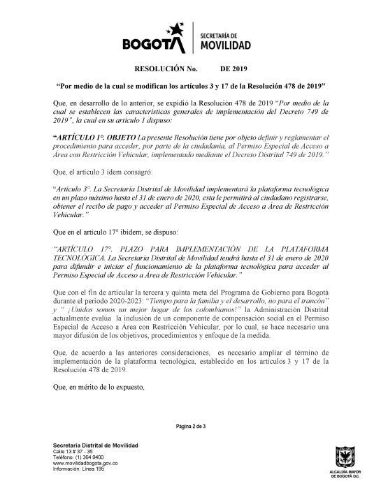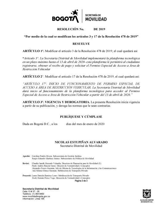 Es por eso que el decreto pone como fecha limite el 13 de abril de este año para que entre en vigencia la plataforma para el pago del permiso para circular en la ciudad con Pico y Placa.