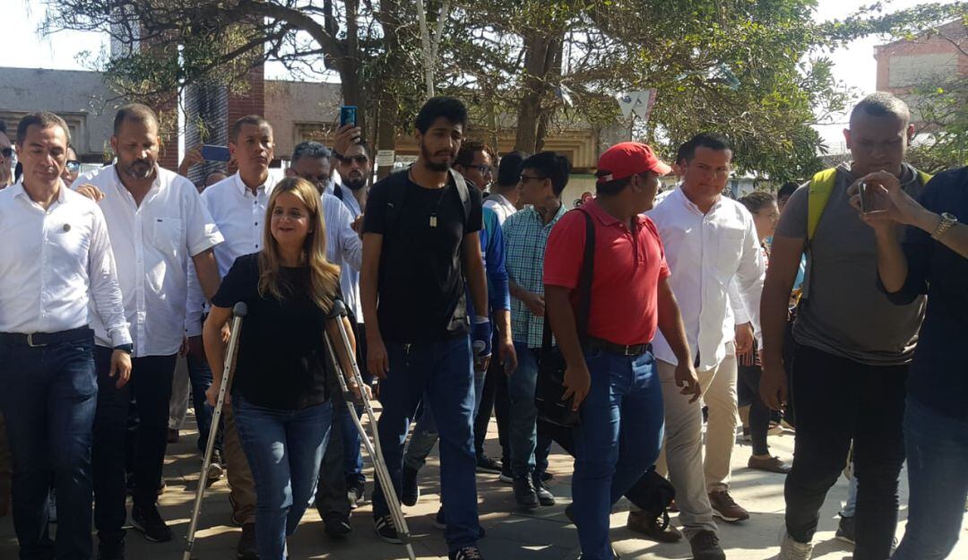 La gobernadora llegó hasta la sede norte del alma mater, donde estudiantes tomistas abrieron el portón de la universidad que permanecía encadenado bajo llave y así, oficializar el cese de actividades para comenzar en primera instancia los trabajos del área administrativo.