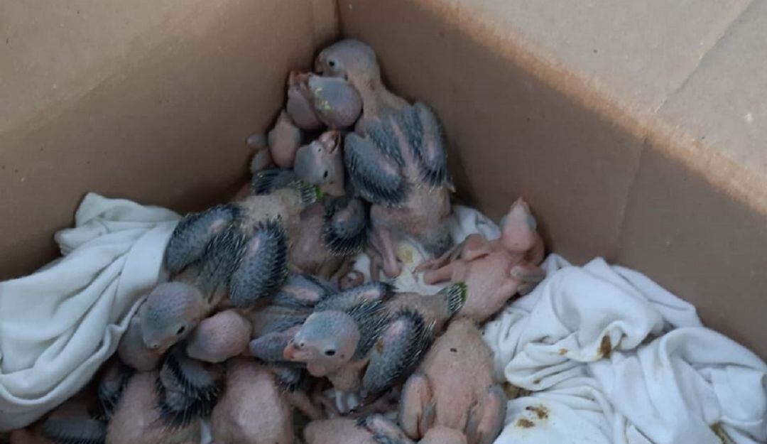 Las aves que estaban dentro de una caja eran pichones.