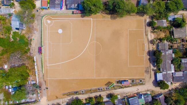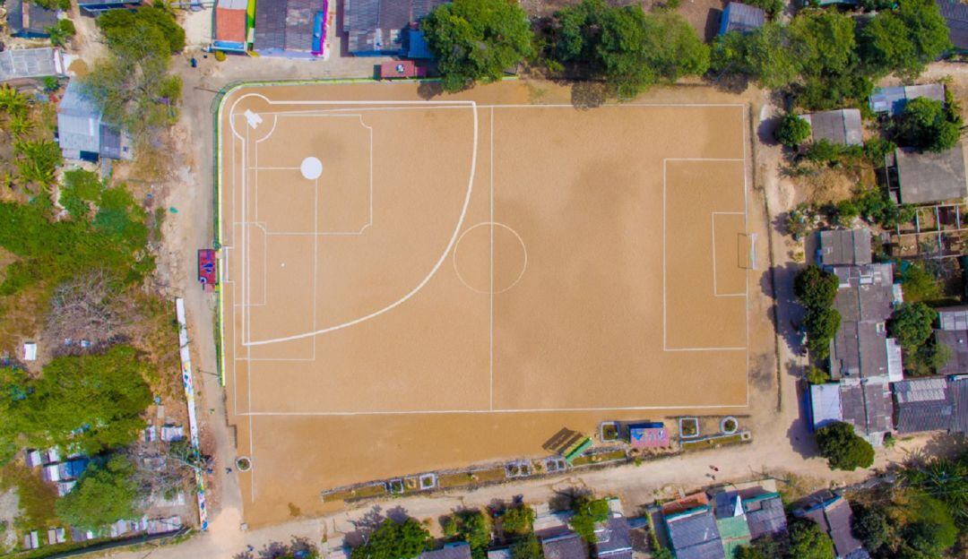 La cancha esta acondicionada para que los niños, jóvenes y adultos de la comunidad