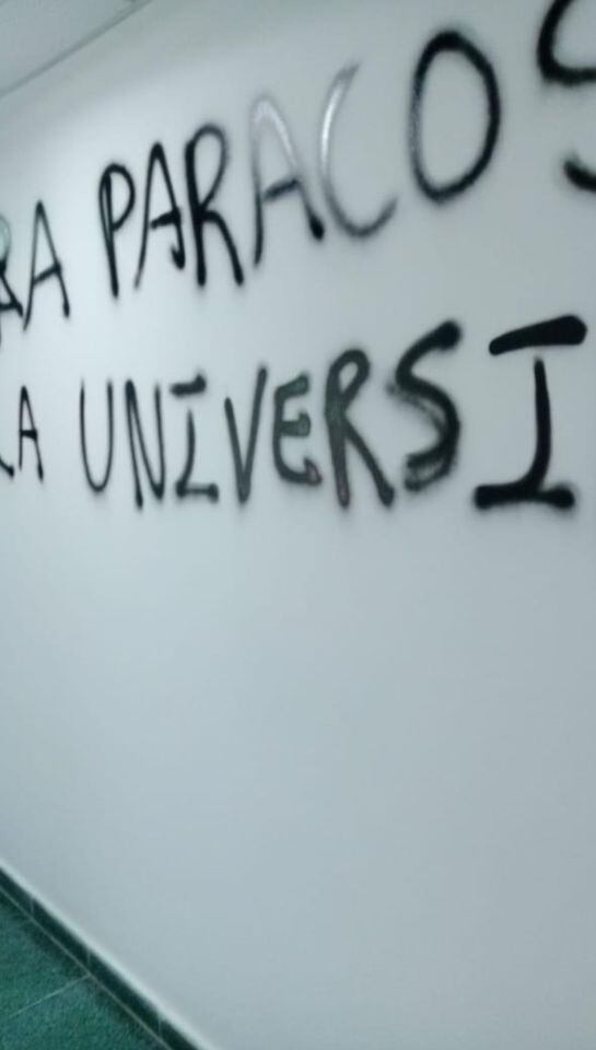 Una vez en el inmueble, pintaron grafitis amenazadores en contra de un exrector de la institución.