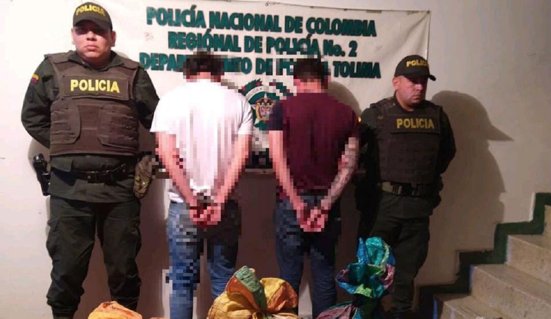 En la vía terciaria del corregimiento de Santiago Pérez, vía al casco urbano de Ataco, los agentes de la Policía capturaron a dos hombres que se movilizaban en un carro en el que llevaban un cargamento de droga.