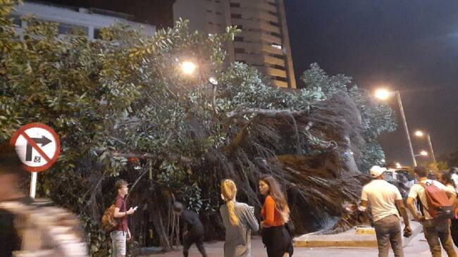 Susto, causó entre los cartageneros la caída de un árbol de Caucho en el Centro Histórico de Cartagena, el cual se encontraba ubicado en inmediaciones de la avenida Venezuela de este sector de la ciudad.
