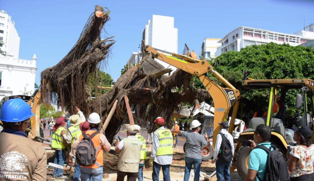 Fue un trabajo colaborativo. Sociedad Civil, Alcaldía y empresa privada unieron esfuerzos para salvar el árbol de caucho que se cayó por el peso de sus ramas.