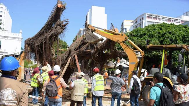Árbol de caucho que cayó en Centro Histórico de Cartagena fue resembrado