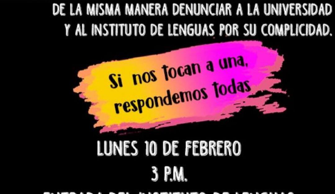 La jornada de protesta se efectuará a las dos de la tarde frente al Instituto de Lenguas pues las organizadoras sindican de acoso a un docente adscrito a esa dependencia.