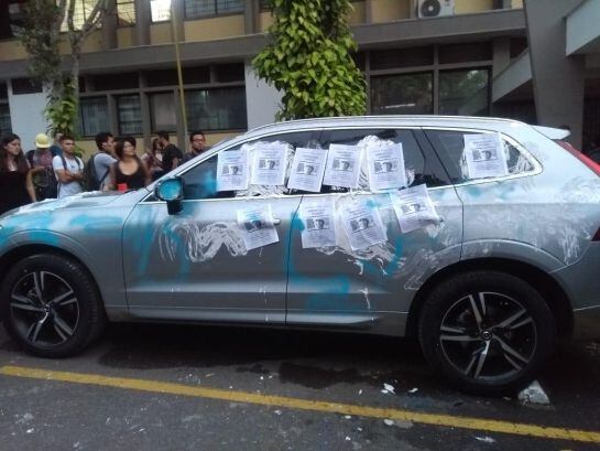 El edifico administrativo donde funciona la rectoría terminó con puertas y vidrios rotos. También el carro del rector fue pintado con grafitis.