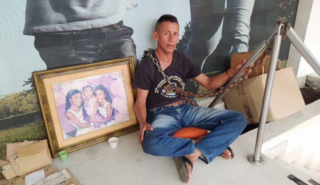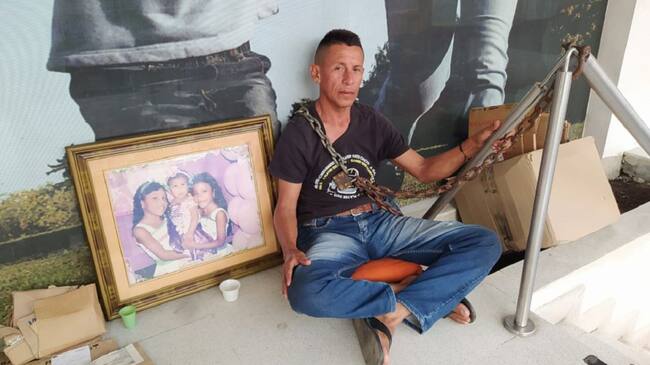 Ángel Ortega Ortega, cumplió 24 horas encadenado en la entrada de Coomeva del barrio Manga en Cartagena, según él, debido a una deuda de incapacidades que asciende a los 32 millones de pesos.