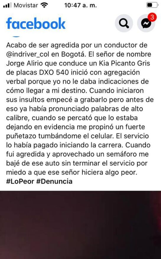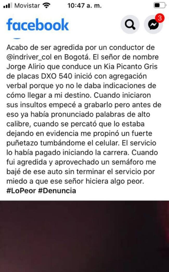 Por su parte, InDriver aseguró que tomará acciones frente a lo ocurrido con el conductor y este será bloqueado.