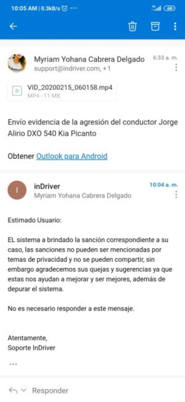 Además, luego de que en redes sociales se hiciera viral la agresión que sufrió la periodista Yohana Cabrera, ella aseguró que, tras poner la queja ante esta empresa, le llegó un correo en el que le afirman que el sistema aplicó la sanción correspondiente.