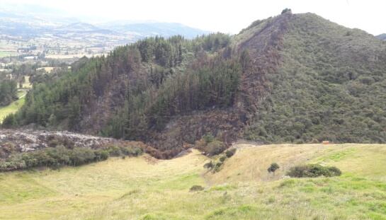 Más de cuatro días de trabajo requirieron los Bomberos de Cundinamarca para apagar las llamas que se propagaron y consumieron 12 hectáreas de bosques nativos y de pinos.