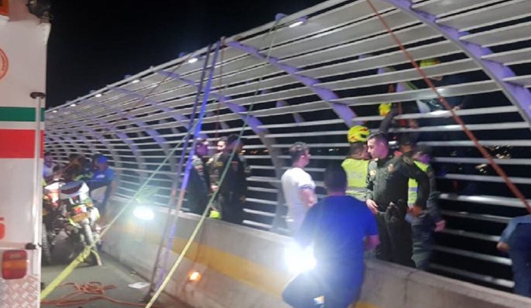 Hombres del Cuerpo de Bomberos de Bucaramanga debieron acudir de emergencia al puente de la Novena en la madrugada de este martes.