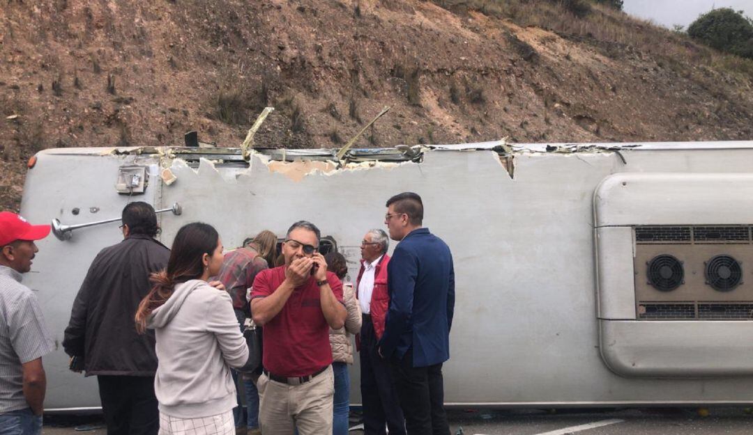 El vehículo involucrado en el accidente, que se volcó en esta vía, fue un bus de placas TAV176 servicio Publico, marca Scania de la empresa Libertadores.