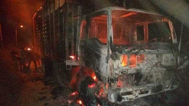 La noche del martes una turbo que transportaba legumbres desde Medellín hasta Mompós fue quemada en su cabezote porque el conductor se rehusó a pagar una especia de vacuna.