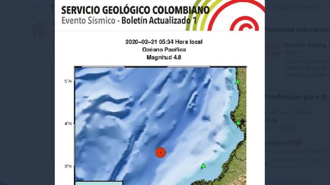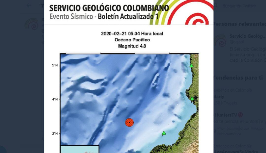 La Dirección General Marítima confirmó que el sismo ocurrido hacia las 5 y 34 de la madrugada de hoy viernes, con una magnitud de 4.8 grados en la escala de Richter y profundidad superficial de 30 kilómetros, no representa una amenaza de tsunami para las costas colombianas, en particular de la Región Pacífica.