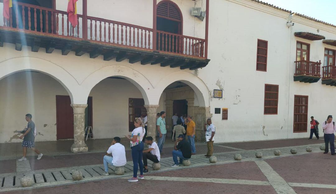 Trabajadores de Asomenores, se tomaron las instalaciones de la Alcaldía de Cartagena, exigiendo que les sea saldada la deuda que tiene esta administración con personal que trabajó para esta entidad durante muchos años.
