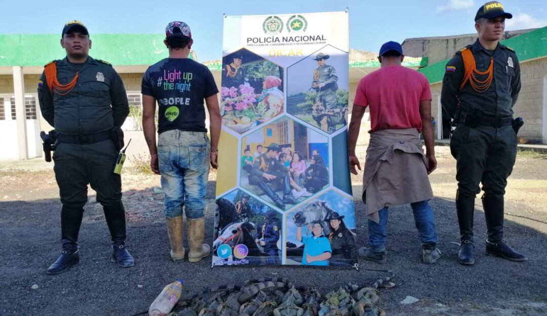 Los uniformados que patrullaban por la zona rural del municipio de Arjona procedieron a dar con la captura de los dos ciudadanos que se disponían a extraerle los huevos a las iguanas y posteriormente comercializarlos a las personas que transitan con sus vehículos por en el puente de Gambote.