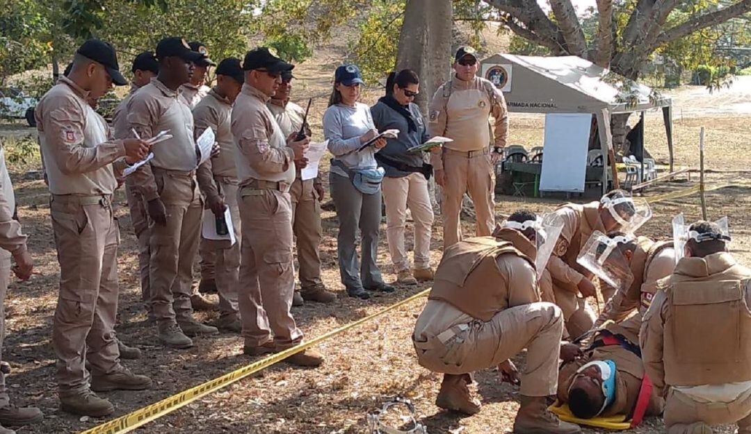 183 miembros de la Institución Naval, entre Oficiales, Suboficiales e Infantes de Marina Profesionales, recibieron, durante un mes, entrenamiento e instrucción para fortalecer sus conocimientos en técnicas de desminado manual, uso de detectores de metales y evacuación médica.