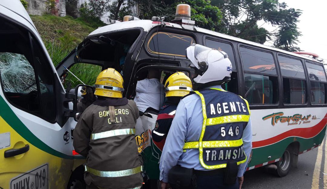 Fue un choque de frente entre dos busetas, una de expreso Palmira y otra de Transur, a pocos kilómetros de la salida de Cali hacia el puerto de Buenaventura y que dejó 15 heridos que son atendidos en centros asistenciales de la capital del Valle.