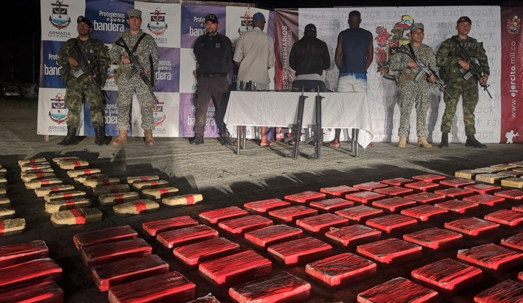 El contralmirante John Fabio Giraldo Gallo, comandante de la Fuerza Naval del Pacífico, reveló que durante la operación los responsables de custodiar el cargamento de droga huyeron y se lograron capturar tres de los delincuentes e incautarles armamento de largo y corto alcance.