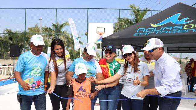 Aguas de Cartagena entrega cancha deportiva en el barrio Villa Estrella
